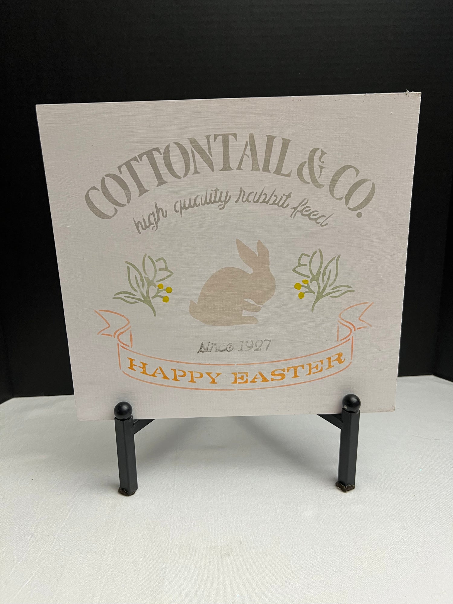 Add a touch of whimsy to your Easter decor with the Cottontail and Co Easter Sign. Measuring 12x12, this sign features soft muted colors and can be hung on a wall, displayed on an easel, or added to a mantle grouping. Perfect for adding some holiday cheer!