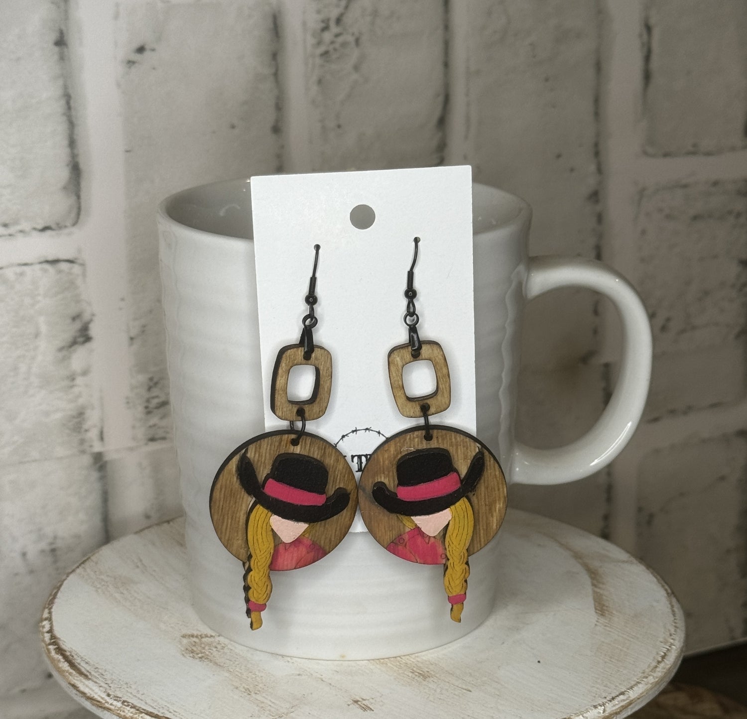 Saddle up and show off your cowgirl style with these 3D hat earrings! Perfect for any rodeo or Western-themed event. The round background adds a playful touch to this fun and funky accessory. Yee-haw!