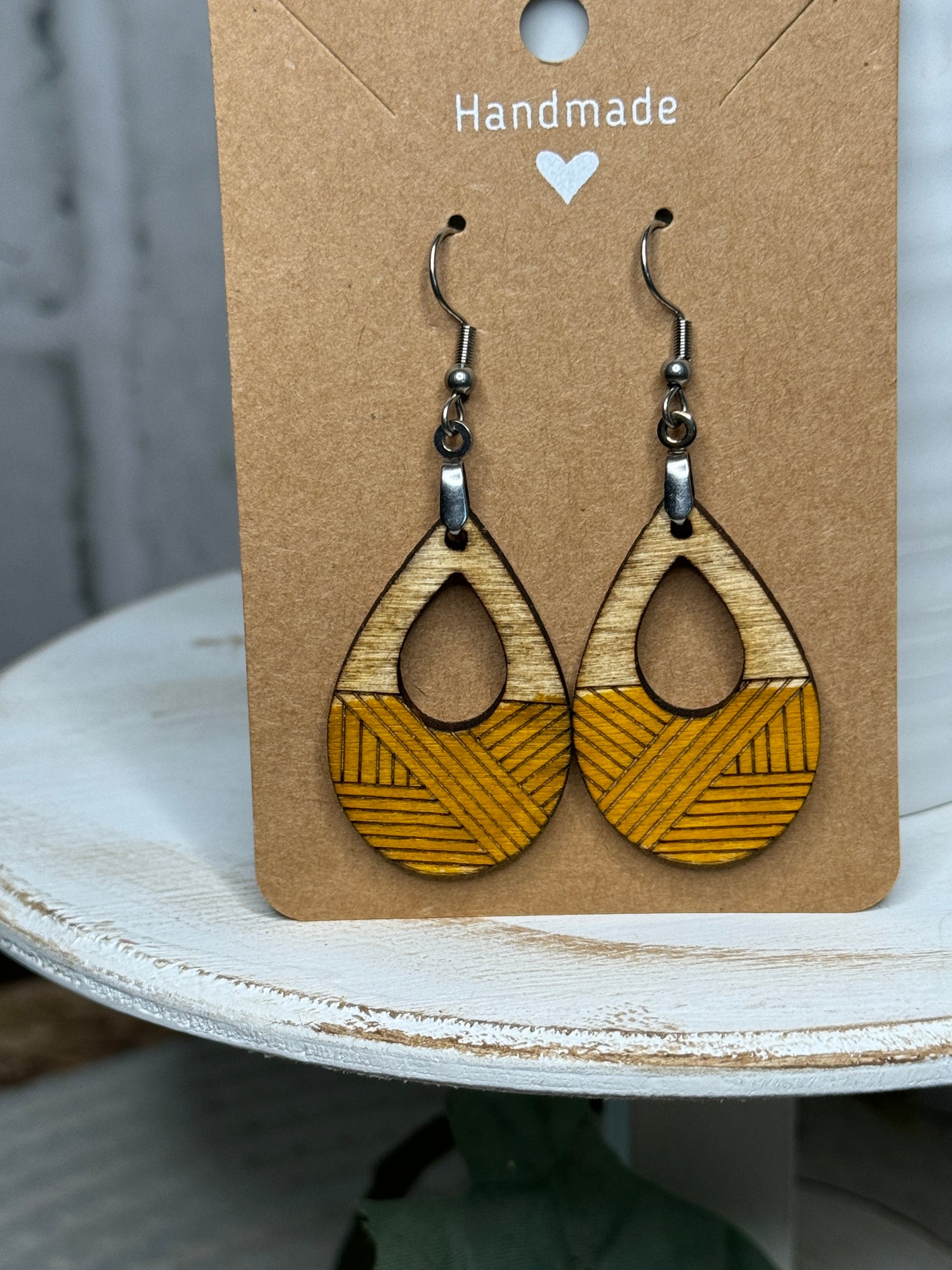 Elevate your style with our unique Criss Cross Boho Dangle earrings! Featuring a stylish design of intertwined crosses on the lower half, complemented by a Fruitwood Stain finish on the upper half. Available in a range of distressed colors, these earrings add a touch of bohemian charm to any outfit.