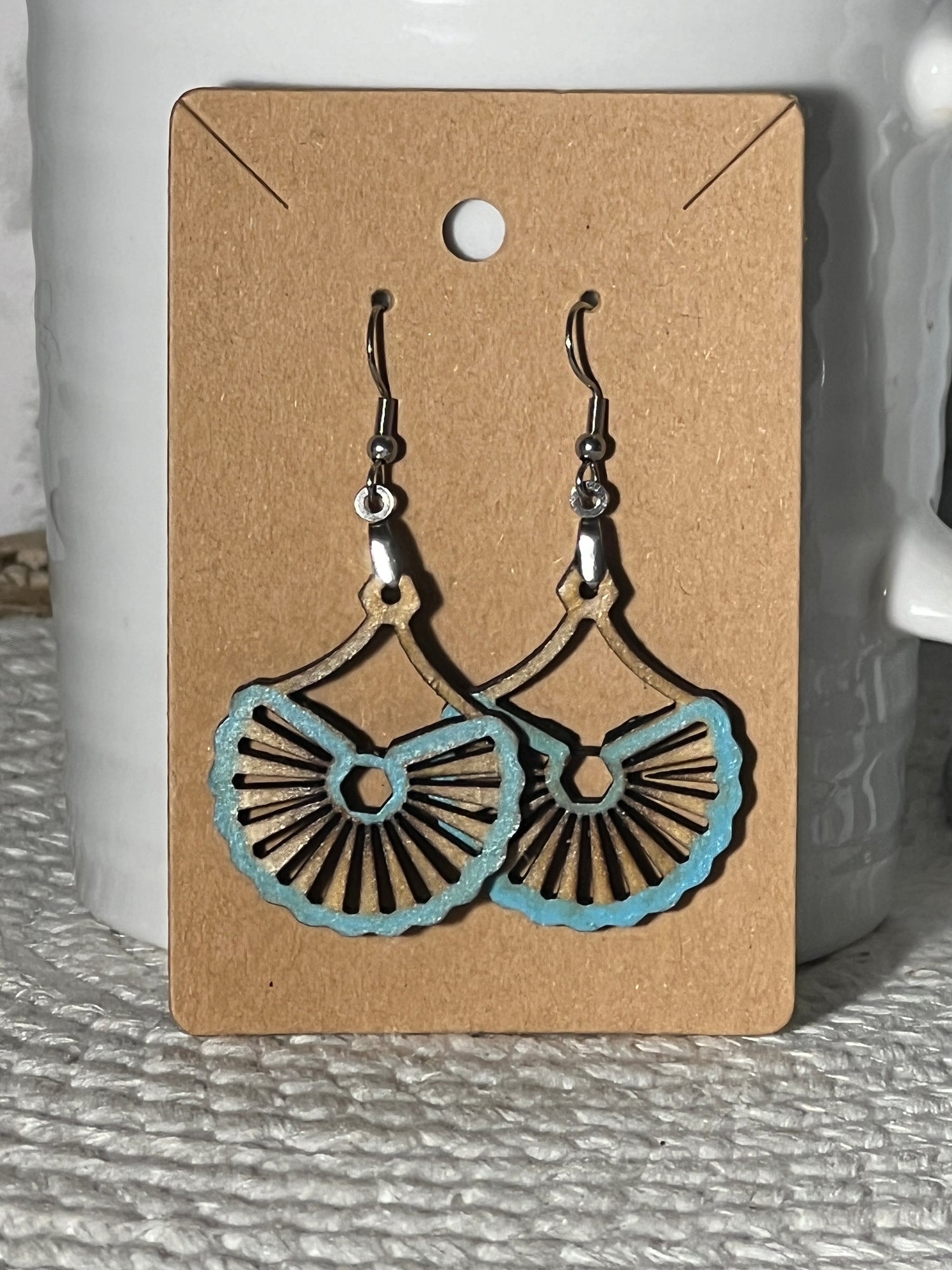 "Upgrade your earring game with our Stained and Hand-painted Open Slotted half Wagon Wheel Dangle Earring! The medium tone stain adds a touch of elegance, while the open slot creates a unique wagon wheel effect. Perfect for any occasion!" Several color options