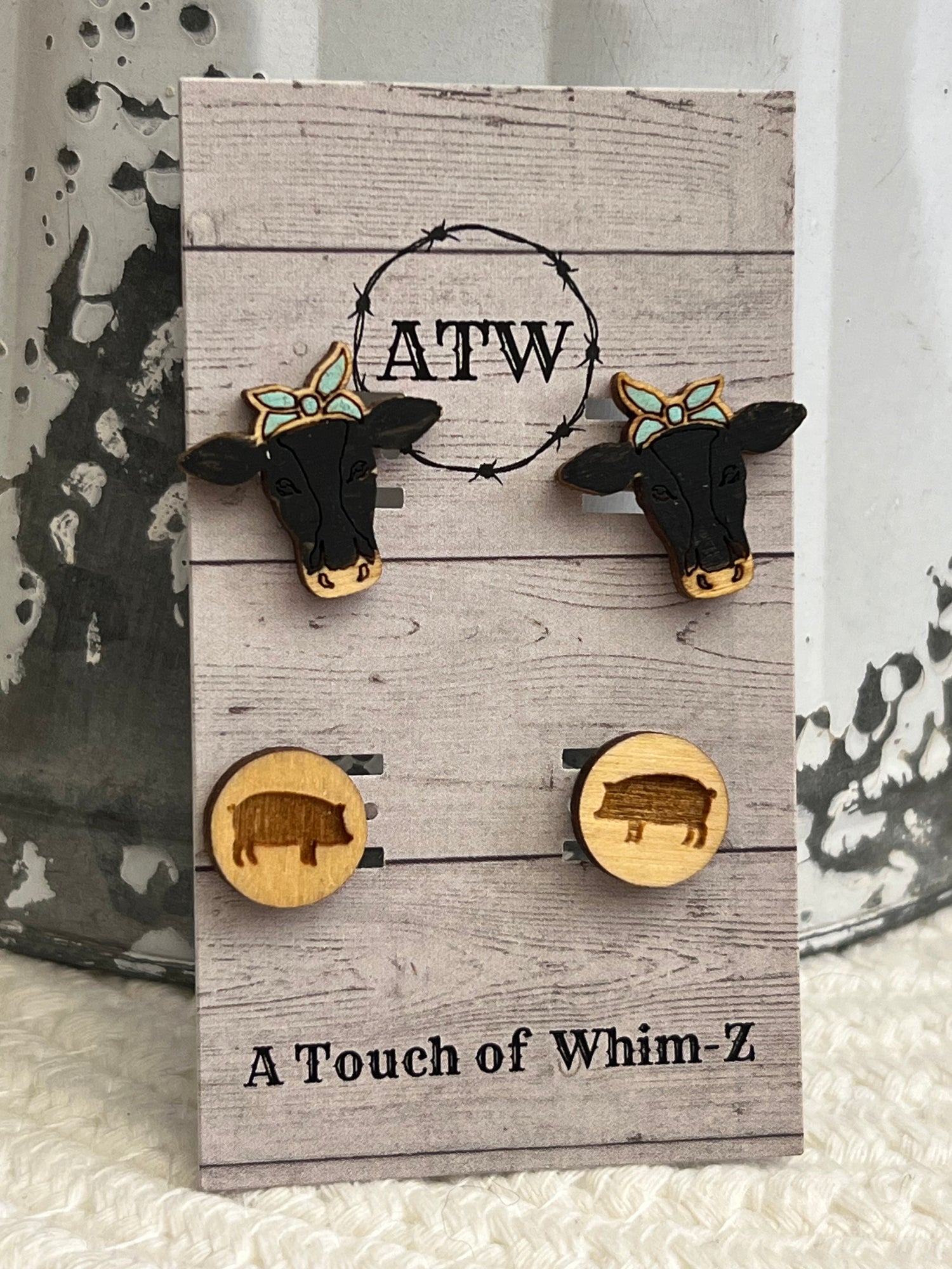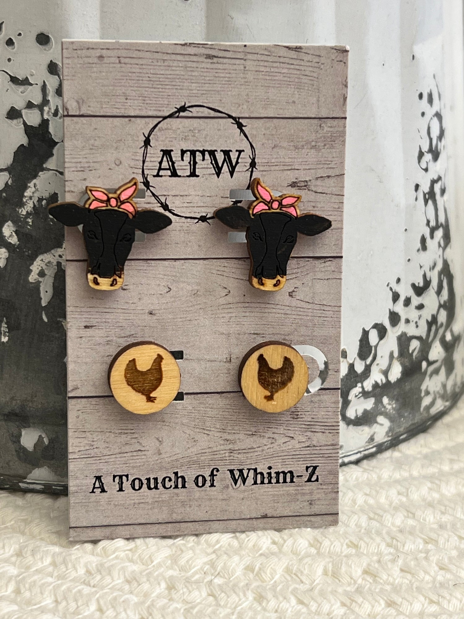 Two pair of studs that certainly represent our Texas Farm Girls. Choice of color and pairings. All are sealed and completed with hypoalergenic posts.
